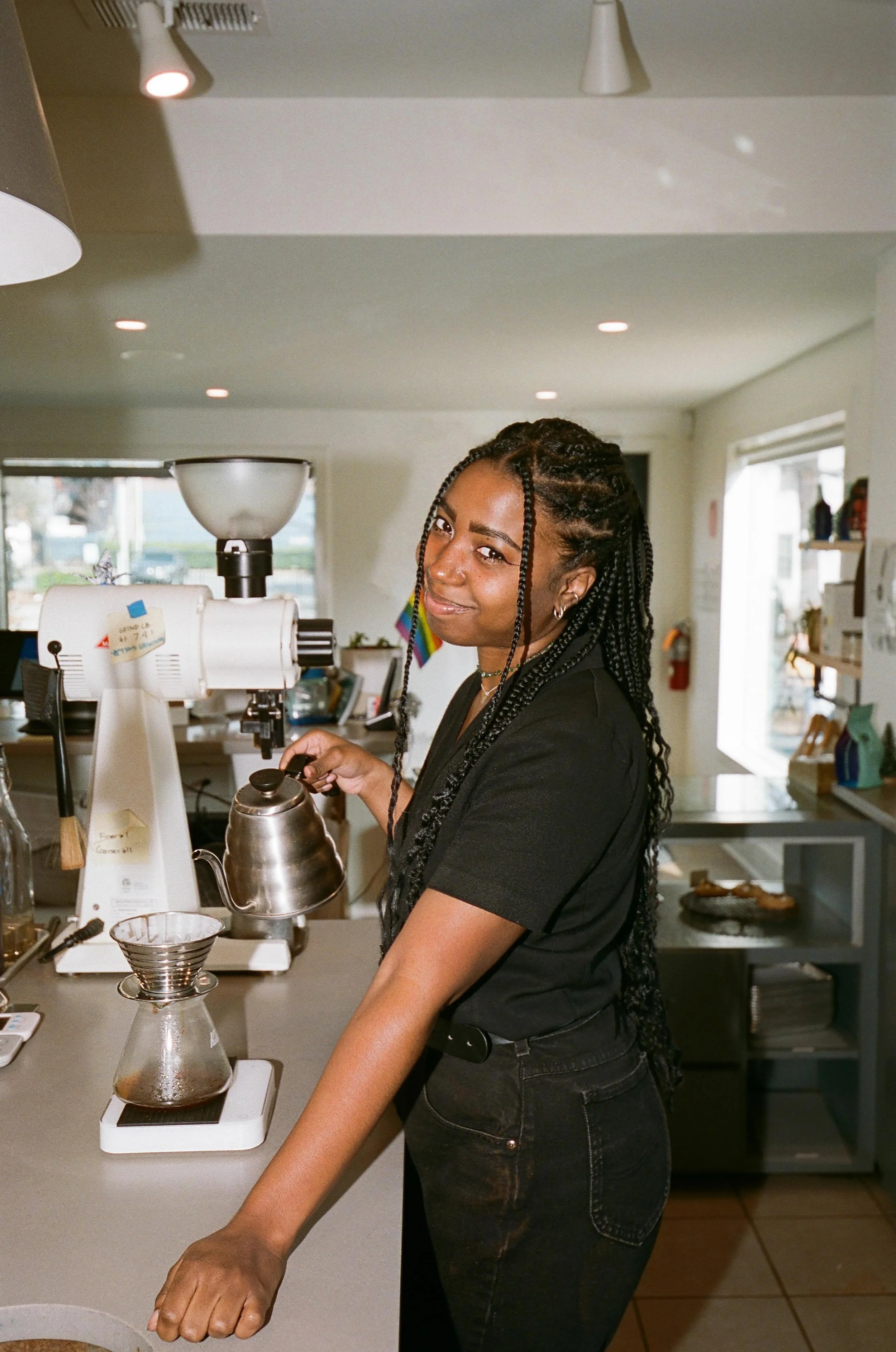 Destiny has been working in the food industry since she was 16 and coffee since 18. Her love for specialty coffee began at Undercurrent Coffee, which led to a career of training baristas and developing educational courses for the public. Her go-to coffee order: iced oat milk capp with simple syrup and a pinch of salt. Her favorite Pokémon: probably Eevee. Her favorite colors: black and slime green.
